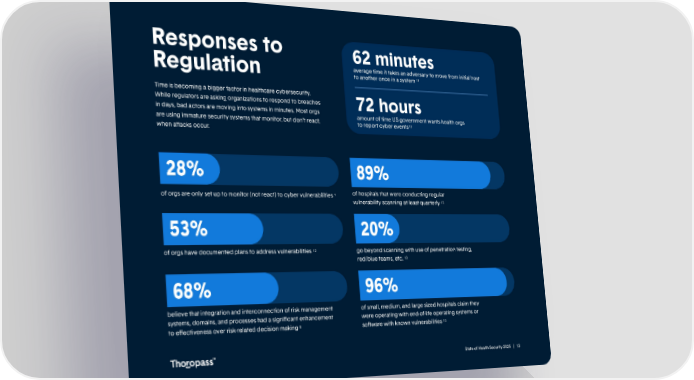 Responses to 62 minutes average time it takes an adversary to move from initial host 11 Regulation to another once in a system Time is becoming a bigger factor in healthcare cybersecurity. While regulators are asking organizations to respond to breaches 72 hours in days, bad actors are moving into systems in minutes. Most orgs amount of time US government wants health orgs are using immature security systems that monitor, but don’t react, to report cyber events12 when aacks occur. of hospitals that were conducting regular of orgs are only set up to monitor (not react) to cyber vulnerabilities 1 13 vulnerability scanning at least quarterly 13 of orgs have documented plans to address vulnerabilities go beyond scanning with use of penetration testing, 13 red/blue teams, etc. believe that integration and interconnection of risk management of small, medium, and large sized hospitals claim they systems, domains, and processes had a significant enhancement were operating with end-of-life operating systems or 8 13 to eectiveness over risk-related decision making soware with known vulnerabilities State of Health Security 2025 | 13